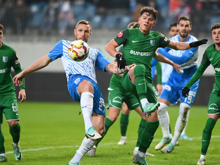 Jasmin Kurtic si Luca Nicolae Banu in meciul de fotbal dintre Universitatea Craiova si Farul Constanta, contand pentru Cupa Romaniei Betano, desfasurat pe Stadionul Ion Oblemenco din Craiova, marti 5 decembrie 2023. © FOTO:Razvan Pasarica/SPORT PICTURES