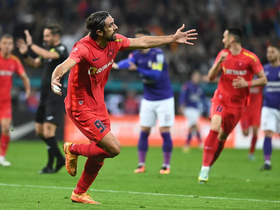 Andrea Compagno se bucura dupa un gol marcat in meciul de fotbal dintre FCSB si Rapid Bucuresti, contand pentru Superliga Superbet, desfasurat pe Arena Nationala din Bucuresti, duminica 6 noiembrie 2022. © FOTO:Razvan Pasarica/SPORT PICTURES