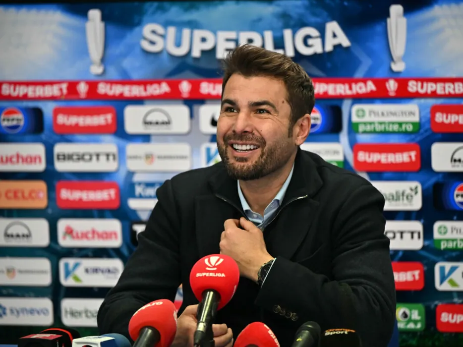 Adrian Mutu la conferinta de presa de dupa meciul de fotbal dintre Farul Constanta si CFR Cluj, contând pentru Superliga Superbet, desfășurat pe Stadionul central al Academiei Gheorghe Hagi din Ovidiu, sambata 2 martie 2024. © FOTO: Răzvan PĂSĂRICĂ/SPORT PICTURES