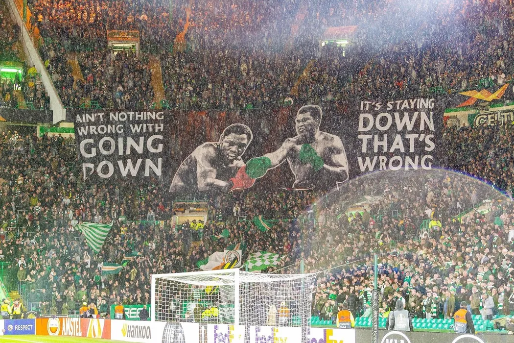 The Green Brigade ahead of kickoff during the Europa League match between Celtic and CFR Cluj at Celtic Park, Glasgow