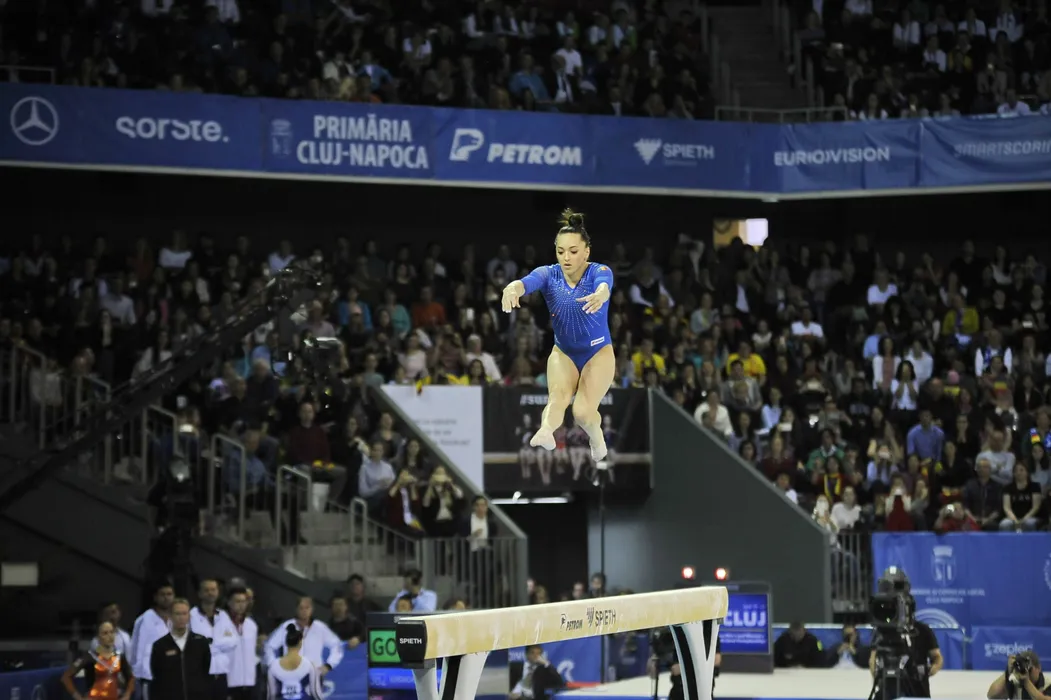 Gimnasta Larisa Iordache evolueaza la barna in finala pe aparate de la Campionatele Europene de Gimnastica Artistica Petrom, desfasurata la Cluj-Napoca, duminica 23 aprilie 2017. DAN HORIA TAUTAN / MEDIAFAX FOTO