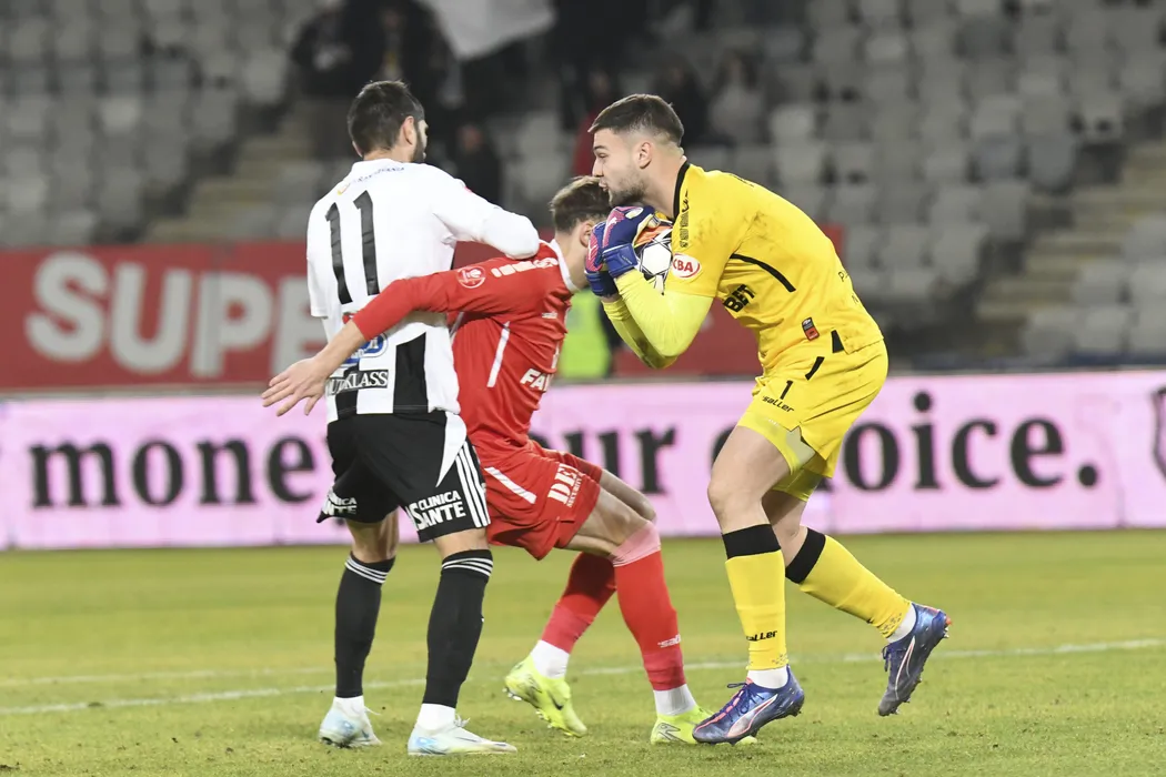 Dimitrie Robert Popa și Artur Miranyan în meciul de fotbal dintre FC Universitatea Cluj și UTA Arad, contând pentru Superliga Superbet, desfășurat pe Stadionul Cluj Arena din Cluj-Napoca, luni 2 decembrie 2024. © FOTO: Flaviu BUBOI/SPORT PICTURES