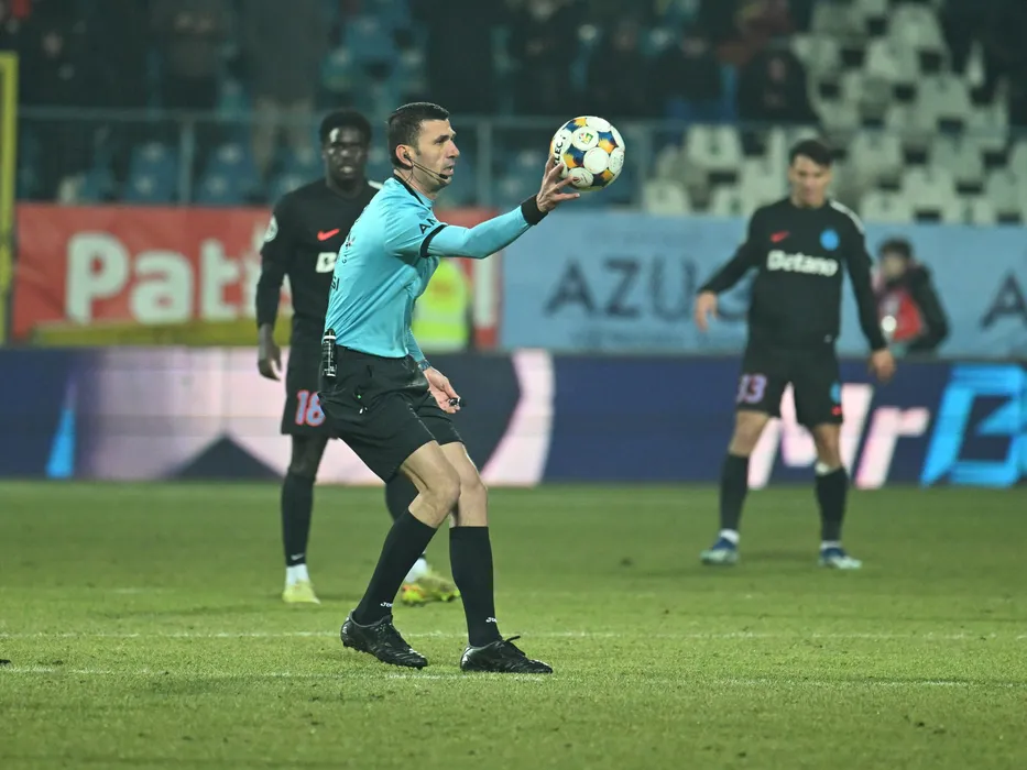 Arbitrul central Marcel Birsan reactioneaza in meciul dintre Otelul Galati si FCSB, contand pentru Superliga Superbet, desfasurat pe Stadionul Otelul din Galati, duminica 8 februarie 2026. © FOTO:Razvan Pasarica/SPORT PICTURES