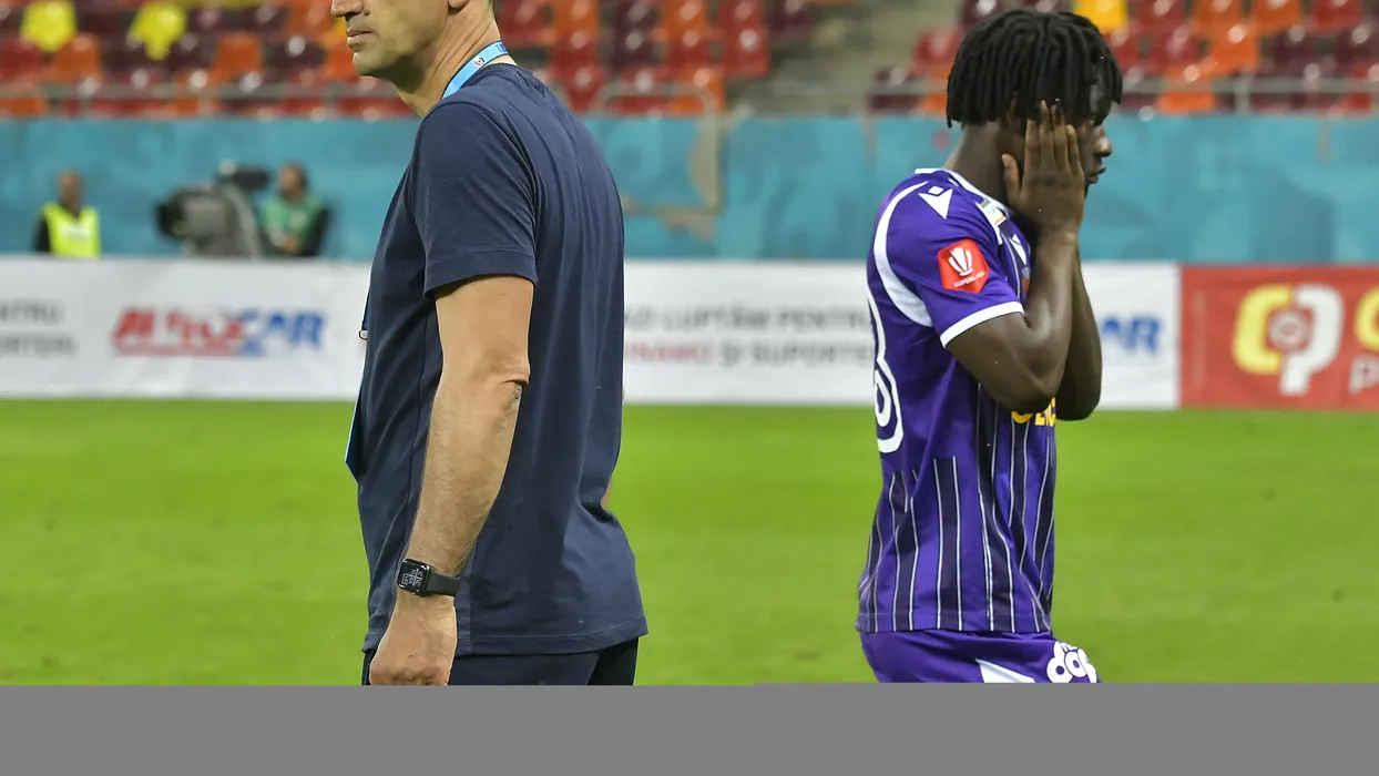 Bogdan Arges Vintila reactioneaza alaturi de Biai Atair Mimito Rocha dupa meciul de fotbal dintre Dinamo Bucuresti si FC Arges, contand pentru mansa tur a barajului de promovare in Superliga Superbet, desfasurat pe Arena Nationala din Bucuresti, luni 29 mai 2023. © FOTO:Razvan Pasarica/SPORT PICTURES