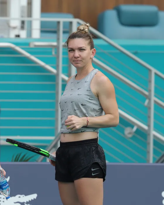 March 16, 2019, Miami Gardens, Florida, United States Of America: MIAMI GARDENS, FL - MARCH 16: Simona Halep on the practice court prior to the start of the Miami Open Tennis Tournament at Hard Rock Stadium on March 16, 2019 in Miami Gardens, Florida...People: Simona Halep.,Image: 732783812, License: Rights-managed, Restrictions: , Model Release: no