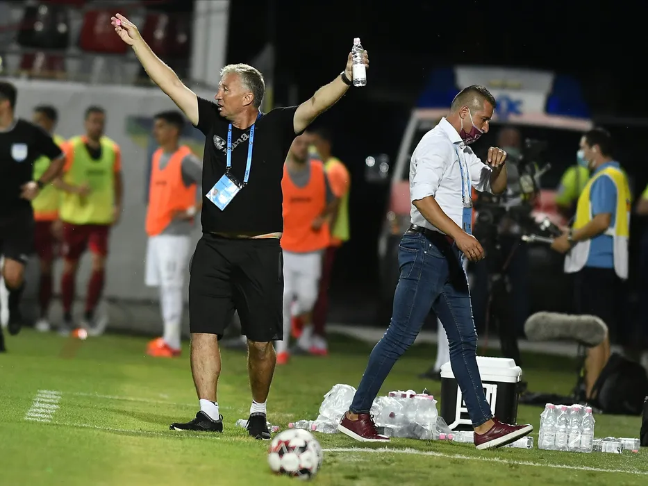 Dan Petrescu si Cristian Panin in meciul de fotbal dintre Astra Giurgiu si CFR Cluj, contand pentru play-off-ul Ligii 1 Casa Pariurilor, disputat fara spectatori pe Stadionul Marin Anastasovici din Giurgiu, duminica 5 iulie 2020. © FOTO:Razvan Pasarica/SPORT PICTURES