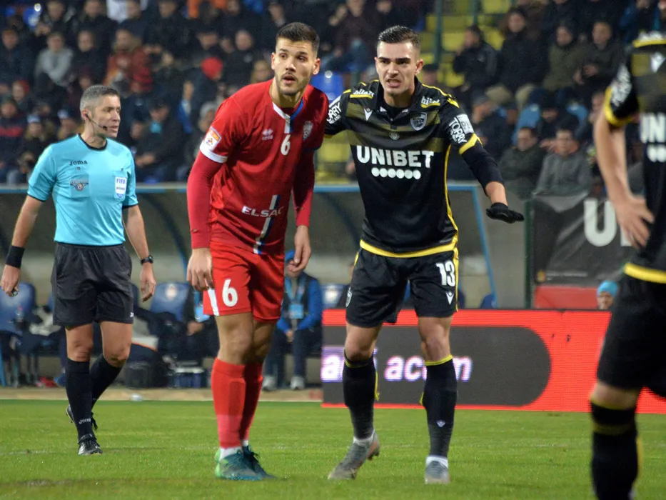 Andrei Chindris si Denis Ciobotariu in meciul de fotbal dintre FC Botosani si Dinamo Bucuresti, contand pentru Liga 1 Casa Pariurilor, desfasurat pe Stadionul Municipal din Botosani, joi 19 decembrie 2019. © FOTO:Ionut Tabultoc/SPORT PICTURES