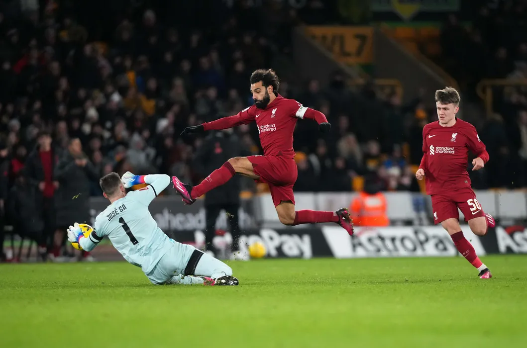 Mohamed Salah of Liverpool shot is saved by Goalkeeper Jose Sa of Wolves during the FA Cup 3rd round replay match between Wolverhampton Wanderers and Liverpool at Molineux, Wolverhampton, England on 17 January 2023. PUBLICATIONxNOTxINxUK Copyright: xAndyxRowlandx PMI-5359-0009