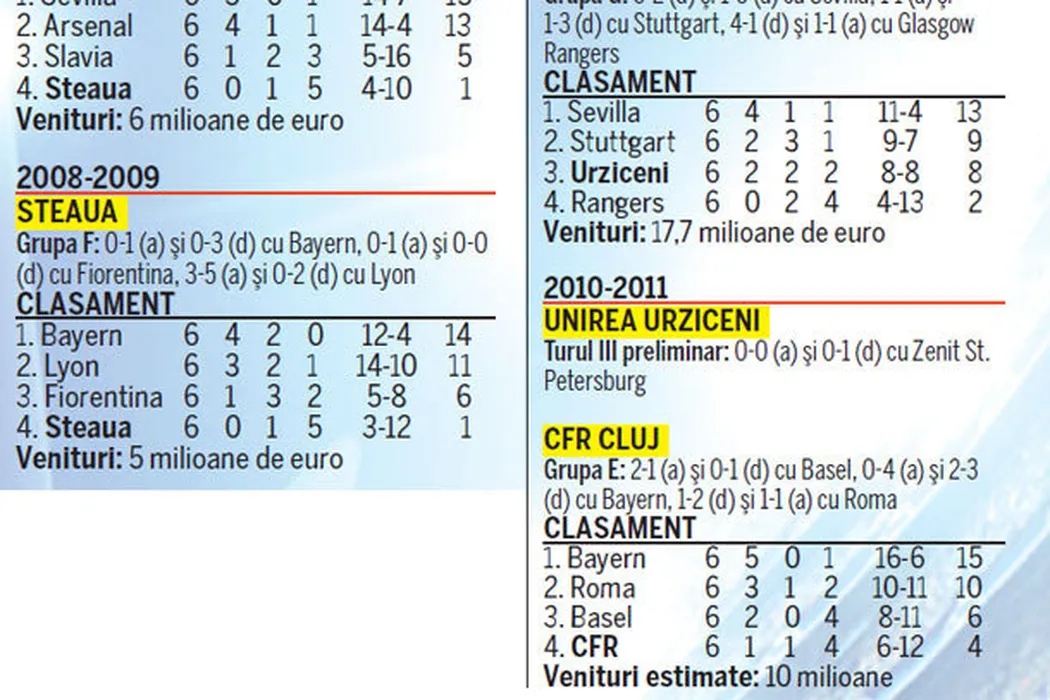 Decontul incompetenței:** Steaua, CFR și Unirea au „topit” 60 de milioane de euro fără folos