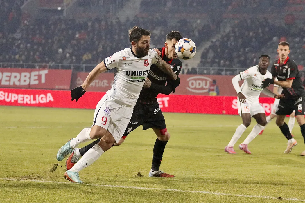 Aurelian Ionut Chitu si Raul Marian Oprut in meciul de fotbal dintre AFC Hermannstadt Sibiu si Dinamo Bucuresti, contand pentru Superliga Superbet, desfasurat pe Stadionul Municipal din Sibiu, vineri 23 ianuarie 2026. © FOTO:Valentin Macrea/SPORT PICTURES
