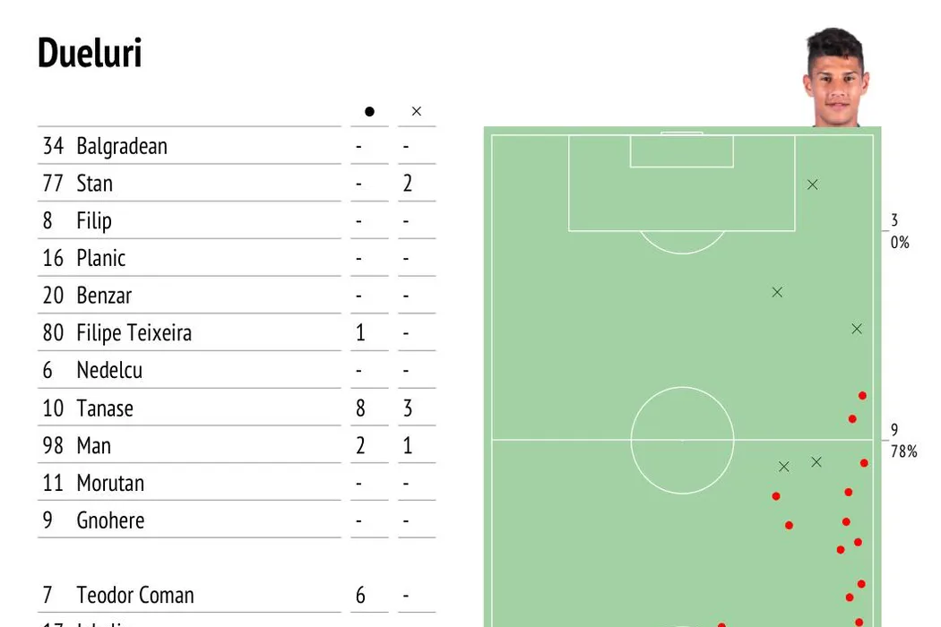 Deian Sorescu, cel mai reușit transfer al lui Dinamo în acest sezon. Tânărul mijlocaș de 21 de ani are cel mai bun procentaj din echipă la duelurile directe