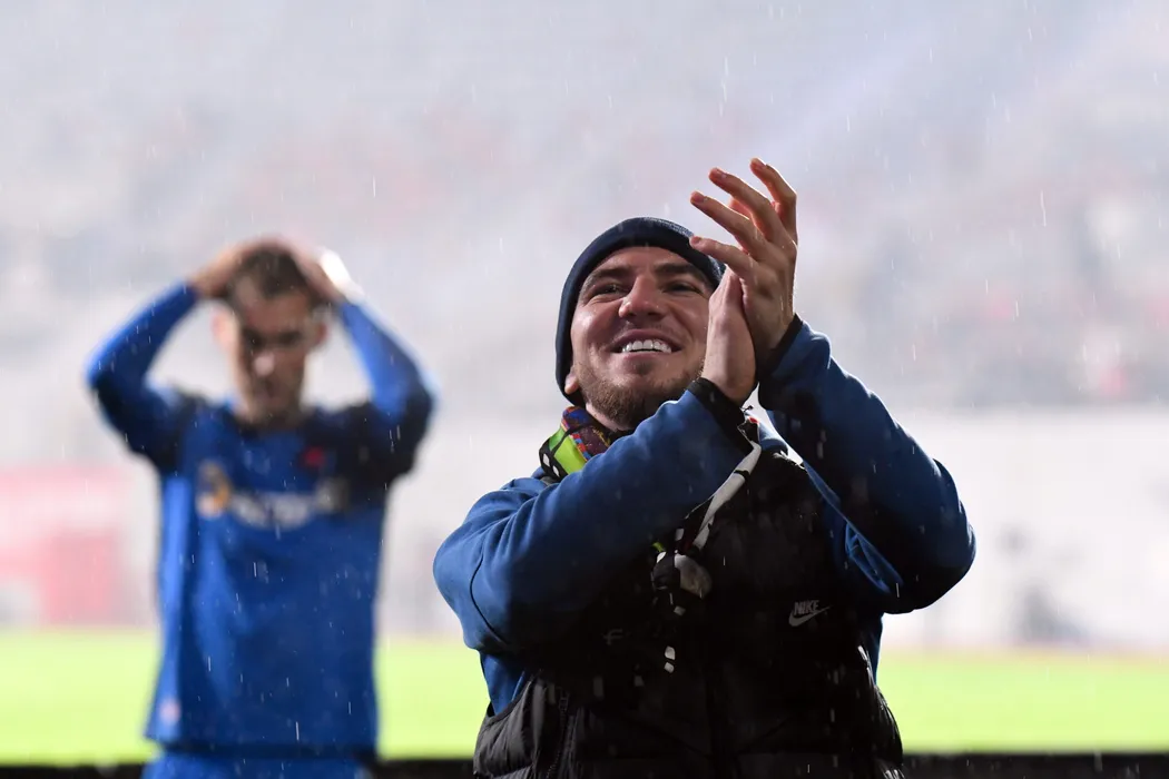 Deian Sorescu (D), de la FCSB, aplauda la finalul meciului de fotbal contra echipei AFC Hermannstadt din etapa a XXII-a a Superligii, disputat pe stadionul Municipal din Sibiu, duminica, 22 ianuarie 2023. FLAVIU BUBOI / MEDIAFAX FOTO