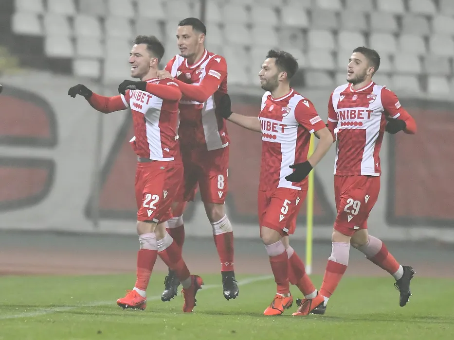 Bucurie a fotbalistilor dinamovisti cu Deian Cristian Sorescu, Paul Anton, Alexandru Ilie Rauta si Catalin Ionut Magureanu dupa un gol marcat in meciul de fotbal dintre Dinamo Bucuresti si Viitorul Constanta, contand pentru Cupa Romaniei, desfasurat fara spectatori pe Stadionul Dinamo din Bucuresti, sambata 28 noiembrie 2020. © FOTO:Razvan Pasarica/SPORT PICTURES