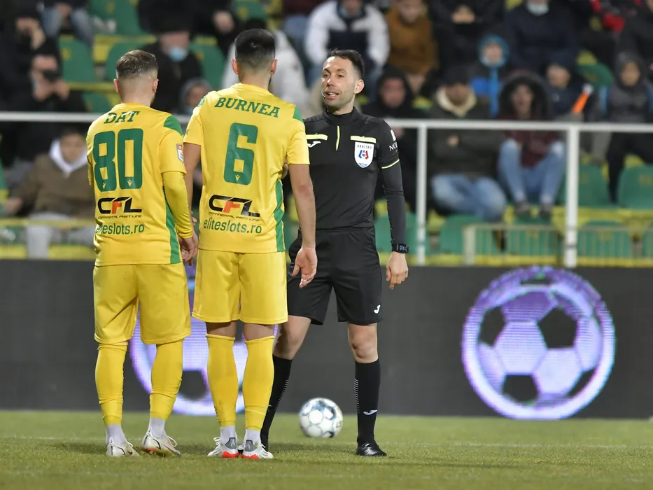 Arbitrul central George Catalin Gaman in meciul de fotbal dintre CS Mioveni si FCSB, contand pentru Liga 1 Casa Pariurilor, desfasurat pe Stadionul Orasenesc din Mioveni, sambata 19 februarie 2022. © FOTO:Razvan Pasarica/SPORT PICTURES