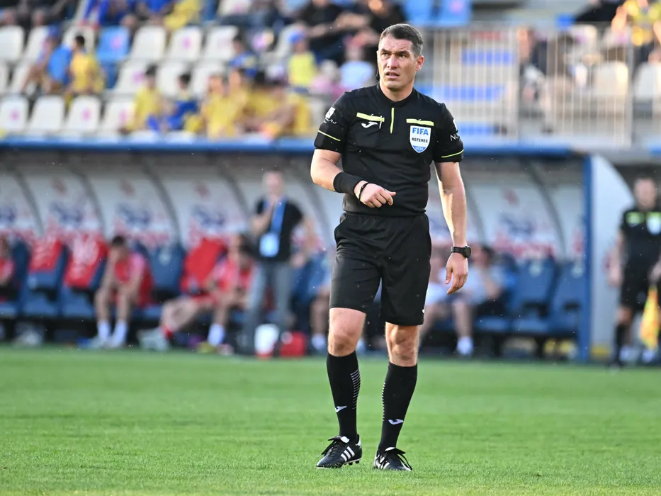 Arbitrul central Istvan Kovacs reactioneaza in meciul de fotbal dintre Petrolul Ploiesti si FC Hermannstadt, din cadrul Superligii Superbet, desfasurat pe Stadionul Ilie Oana din Ploiesti, vineri 27 septembrie 2024. © FOTO:Razvan Pasarica/SPORT PICTURES