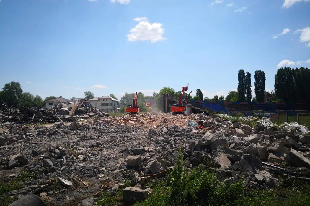 Demolare în ritm alert. Tribuna a II-a a stadionului de la Târgoviște, la pământ