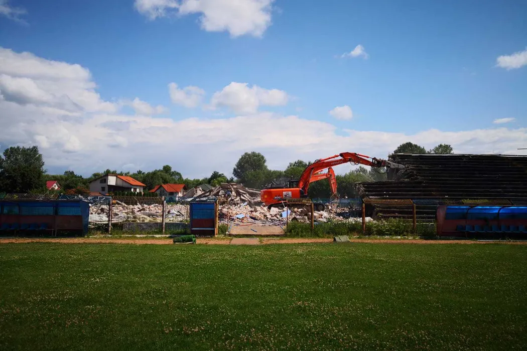Demolare în ritm alert. Tribuna a II-a a stadionului de la Târgoviște, la pământ