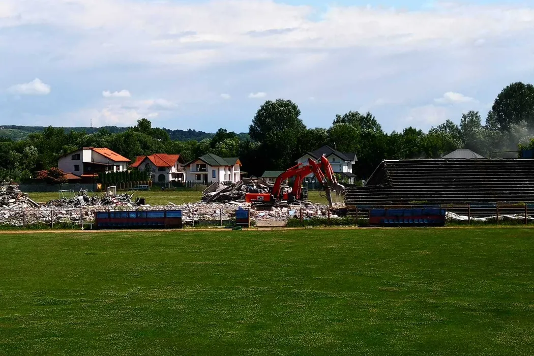 Demolare în ritm alert. Tribuna a II-a a stadionului de la Târgoviște, la pământ