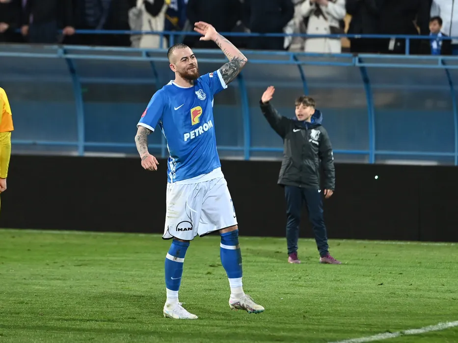 Denis Alibec saluta galeria dupa meciul de fotbal dintre Farul Constanta si Sepsi OSK Sfantu Gheorghe, contand pentru Play-off-ul Superligii Superbet, desfasurat pe Stadionul central al Academiei Gheorghe Hagi din Ovidiu, duminica 19 martie 2023. © FOTO:Razvan Pasarica/SPORT PICTURES