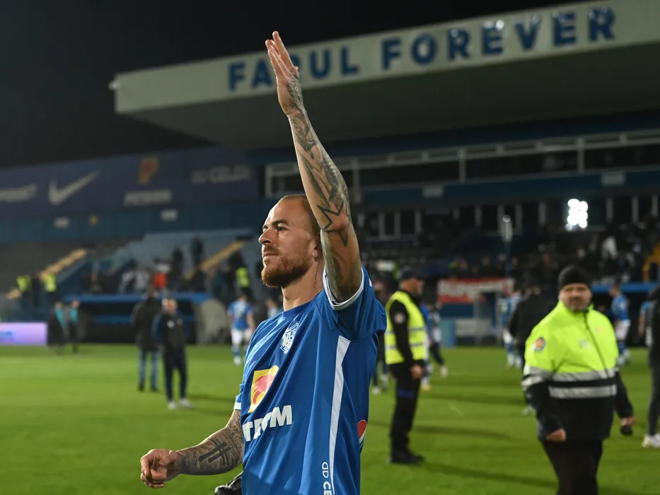 Denis Alibec saluta galeria dupa meciul de fotbal dintre Farul Constanta si CS Mioveni, contand pentru Superliga Superbet, desfasurat pe Stadionul central al Academiei Gheorghe Hagi din Ovidiu, vineri 4 noiembrie 2022. © FOTO:Razvan Pasarica/SPORT PICTURES