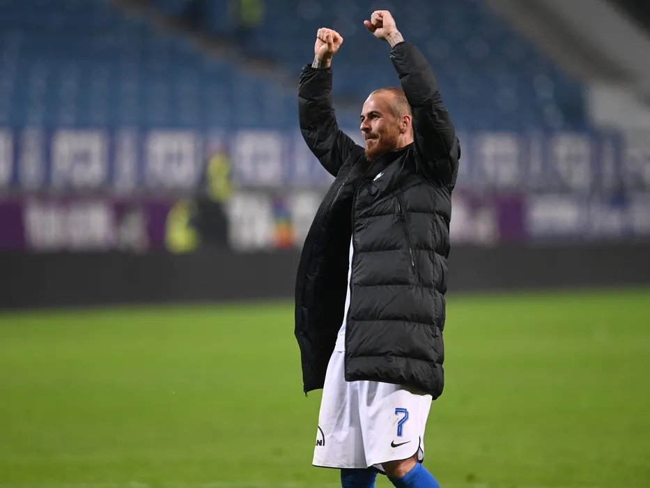 Denis Alibec se bucura dupa meciul de fotbal dintre FC U Craiova si Farul Constanta, contand pentru Superliga Superbet, desfasurat pe Stadionul Ion Oblemenco din Craiova, vineri 28 octombrie 2022. © FOTO:Razvan Pasarica/SPORT PICTURES