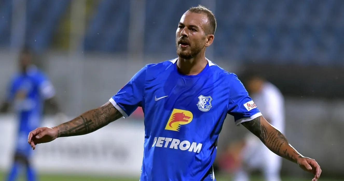 Denis Alibec reactioneaza in meciul de fotbal dintre FC Botosani si Farul Constanta, contand pentru Superliga Superbet, desfasurat pe Stadionul Municipal din Botosani, luni 8 august 2022. © FOTO:Razvan Pasarica/SPORT PICTURES