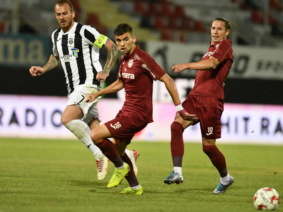 Denis Alibec, Mateo Susic si Ciprian Deac in meciul de fotbal dintre Astra Giurgiu si CFR Cluj, contand pentru play-off-ul Ligii 1 Casa Pariurilor, disputat fara spectatori pe Stadionul Marin Anastasovici din Giurgiu, duminica 5 iulie 2020. © FOTO:Razvan Pasarica/SPORT PICTURES