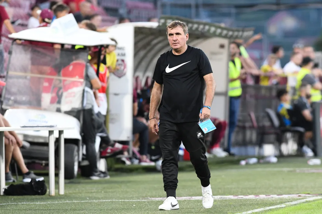 Gheorghe Hagi, antrenorul echipei Farul Constanta, reactioneaza in timpul meciului de fotbal contra formatiei CFR Cluj din etapa a VII- a a Superligii, disputat pe stadionul Constantin Radulescu din Cluj-Napoca, duminica, 28 august 2022. FLAVIU BUBOI / MEDIAFAX FOTO