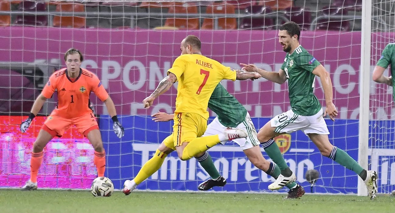 Bailey Peacock-Farrell, Denis Alibec si Craig Cathcart in meciul de fotbal dintre Romania si Irlanda de Nord, contand pentru Liga Natiunilor, desfasurat fara spectatori pe Arena Nationala din Bucuresti, vineri 4 septembrie 2020. © FOTO:Razvan Pasarica/SPORT PICTURES