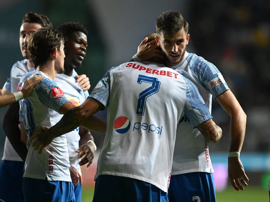 Alexi Paul Pitu si Mihai Popescu se bucura dupa un gol marcat in meciul de fotbal dintre Petrolul Ploiesti si Farul Constanta, contand pentru Superliga Superbet, desfasurat pe Stadionul Ilie Oana din Ploiesti, vineri 16 septembrie 2022. © FOTO:Razvan Pasarica/SPORT PICTURES