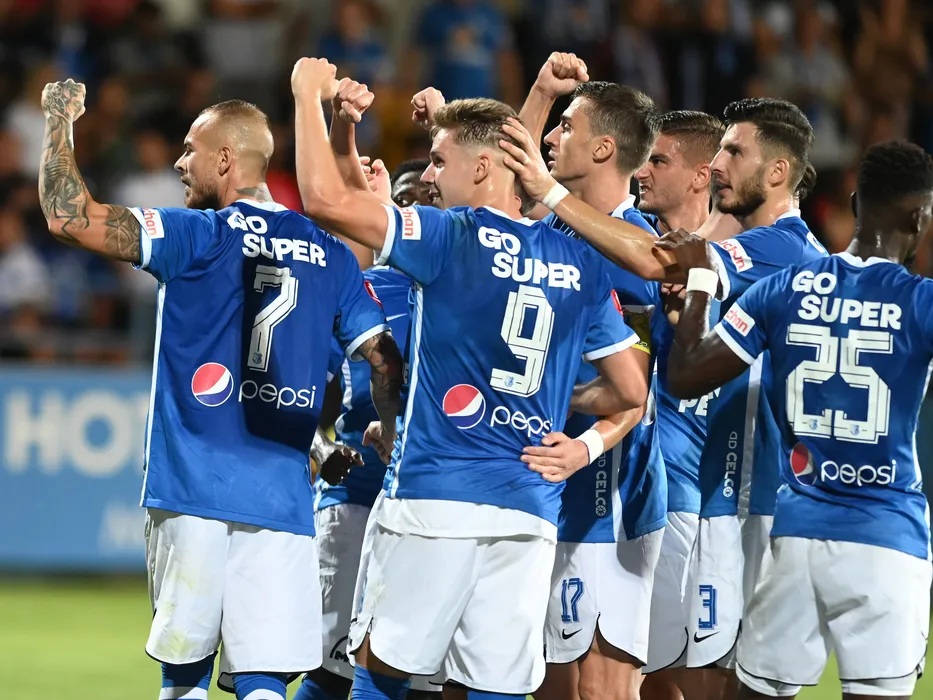 Bucurie a fotbalistilor constanteni dupa un gol marcat cu Denis Alibec, Louis Munteanu, Ionut Justinian Larie, Dragos Ionut Nedelcu si Mihai Popescu in meciul de fotbal dintre Farul Constanta si FCSB, contand pentru Superliga Superbet, desfasurat pe Stadionul central al Academiei Gheorghe Hagi din Ovidiu, miercuri 31 august 2022. © FOTO:Razvan Pasarica/SPORT PICTURES