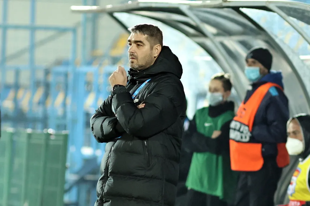 Liviu Ciobotariu, antrenorul echipei FC Voluntari, urmareste meciul de fotbal contra formatiei Dinamo din etapa a XVI-a a Ligii 1, disputat pe stadionul Anghel Iordanescu din Voluntari, luni, 23 noiembrie 2021. GEORGE FILIP / MEDIAFAX FOTO