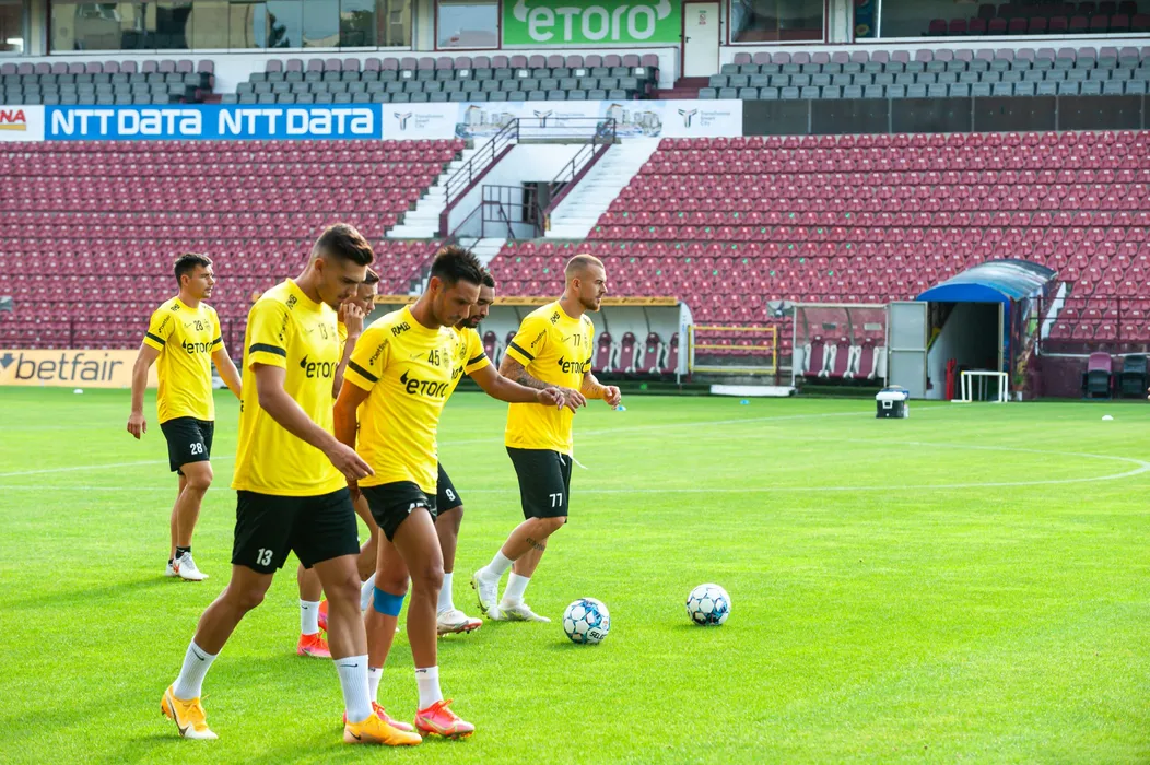 Jucatorii formatiei CFR Cluj efectueaza un antrenament pe stadionul Dr. Constantin Radulescu din Cluj-Napoca, marti, 27 iulie 2021. CFR Cluj intalneste miercuri, in mansa retur a turului II preliminar UEFA Champions League 2021/22, echipa Lincoln Red Imps FC. Meciul este programat in Gruia, de la ora 20:30. DAN HORIA TAUTAN / MEDIAFAX FOTO