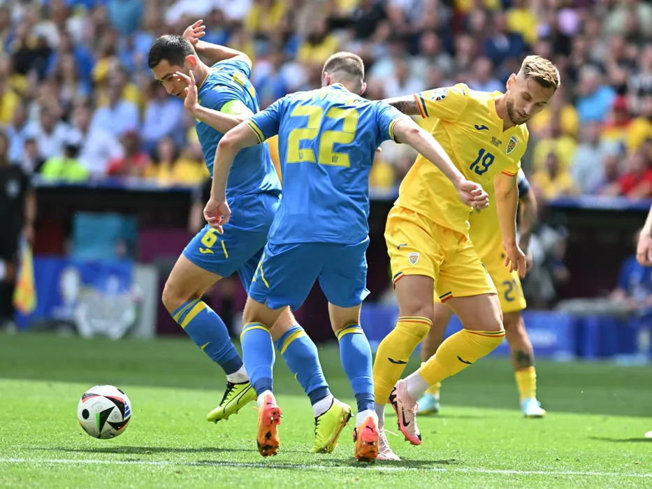 Taras Stepanenko si Denis Drăguş in meciul dintre Romania si Ucraina, din cadrul UEFA EURO 2024, desfasurat pe Fussball Arena din Munchen, luni 17 iunie 2024. © FOTO:Razvan Pasarica/SPORT PICTURES