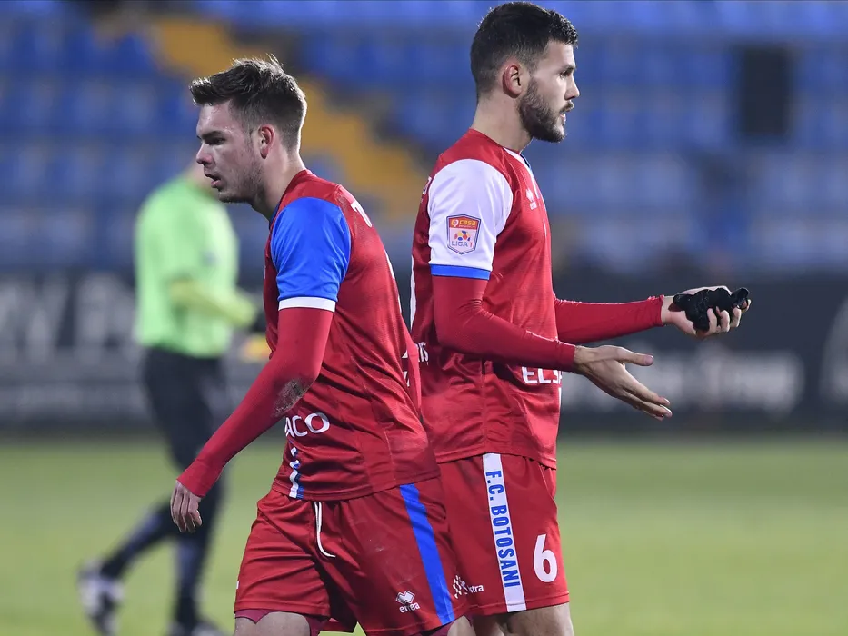 Fotbalistii botoseneni Denis Gratian Harut si Andrei Chindris se bucura dupa meciul de fotbal dintre FC Viitorul Constanta si FC Botosani, contand pentru Liga 1 Casa Pariurilor, desfasurat fara spectatori pe Stadionul Central al Academiei Gheorghe Hagi din Ovidiu, marti 15 decembrie 2020. © FOTO:Razvan Pasarica/SPORT PICTURES