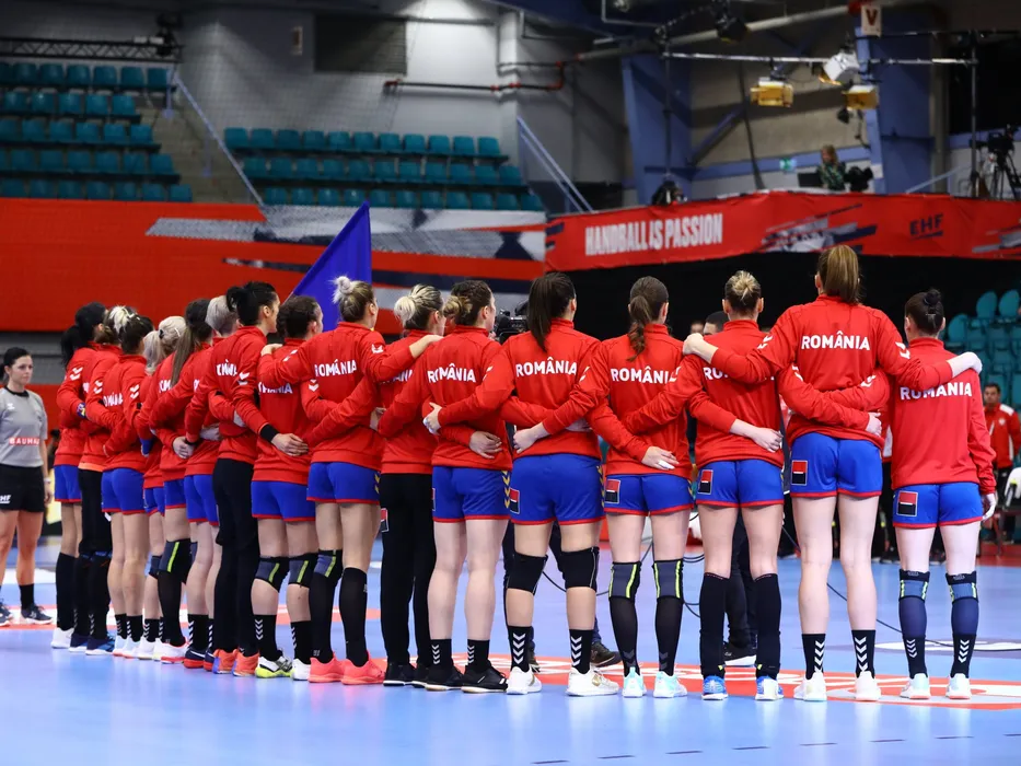 Handbalistele romance la imn in meciul de handbal feminin dintre Romania si Polonia din cadrul Campionatului European 2020, disputat in Sydbank Arena din Kolding-Danemarca, sambata 5 decembrie 2020. © FOTO:Sorin Pana/Sport Pictures