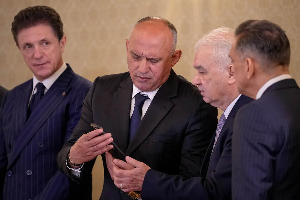 Gheorghe popescu, Florin Prunea si Anghel Iordanescu (S-D) participa la ceremonia in cadrul careia Gheorghe Hagi (nu se afla in imagine) este decorat de presedintele interimar Ilie Bolojan (nu se afla in imagine) cu Ordinul National „Steaua Romaniei” in grad de Cavaler, miercuri, 12 martie 2025, la Palatul Cotroceni din Bucuresti. ANDREEA ALEXANDRU / MEDIAFAX FOTO