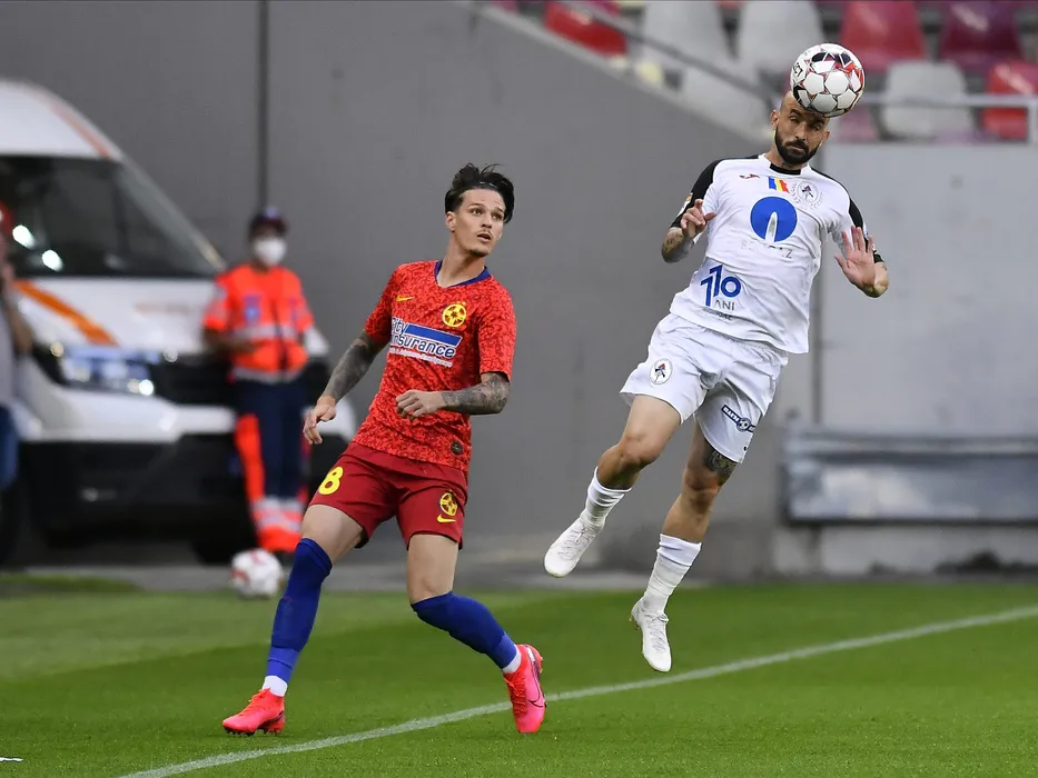 Dennis Man si Gabriel Rodrigues De Moura in meciul de fotbal dintre FCSB si Gaz Metan Medias, contand pentru play-off-ul Ligii 1 Casa Pariurilor, disputat fara spectatori pe Arena Nationala din Bucuresti, duminica 21 iunie 2020. © FOTO:Razvan Pasarica/SPORT PICTURES