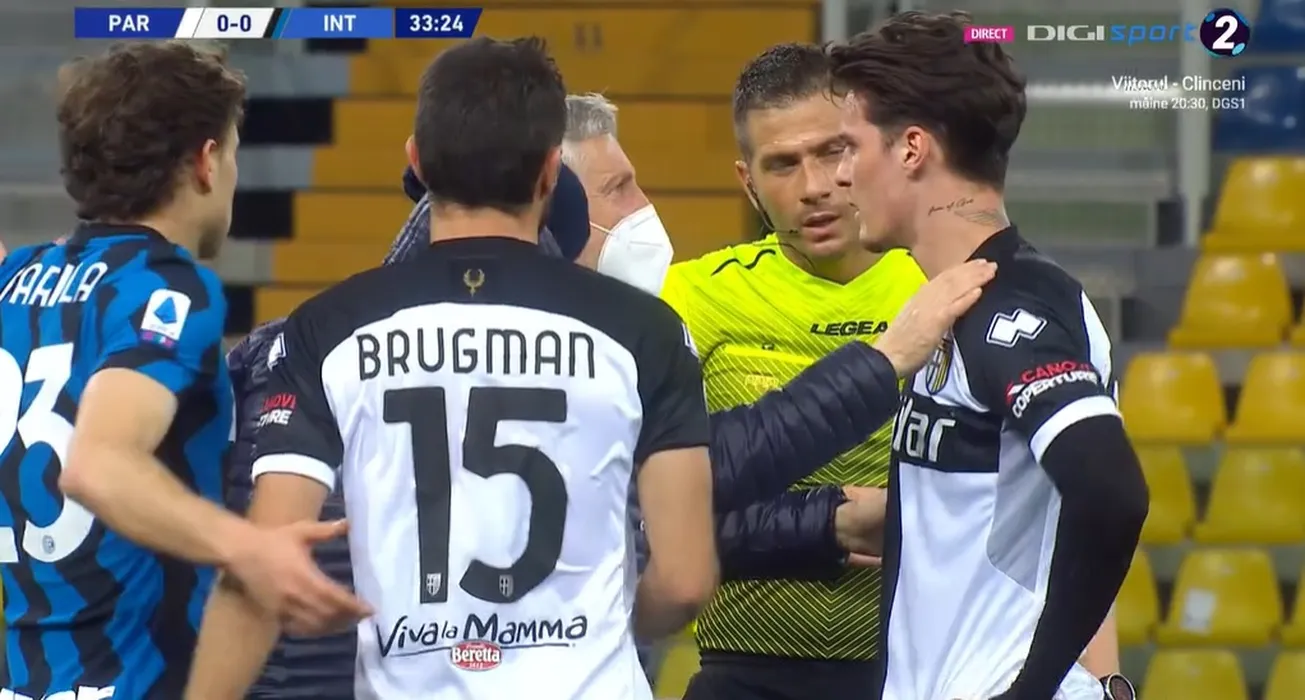 Imaginea serii în Serie A! Dennis Man, KO după prima repriză cu Inter! Cum a reacționat Valentin Mihăilă imediat după fluierul arbitrului | FOTO