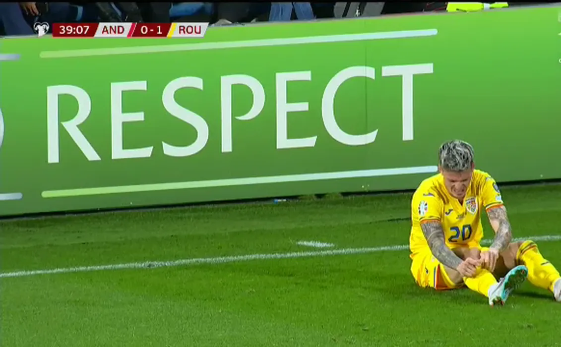 Dennis Man, luat la țintă de rivali! Cum arată piciorul internaționalului român după prima repriză a meciului Andorra – România | FOTO