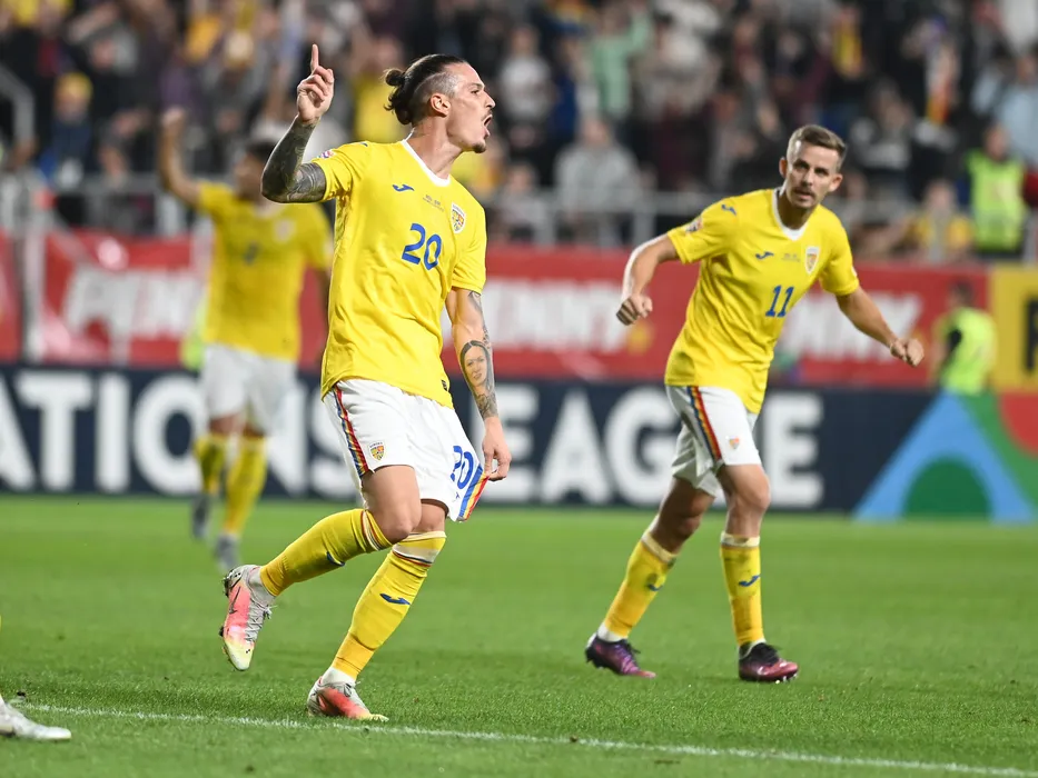Dennis Man se bucura dupa un gol marcat la meciul de fotbal dintre Romania si Bosnia Hertegovina, contand pentru Liga Natiunilor, desfasurat pe Stadionul Rapid Giulesti din Bucuresti, luni 26 septembrie 2022. © FOTO:Razvan Pasarica/SPORT PICTURES