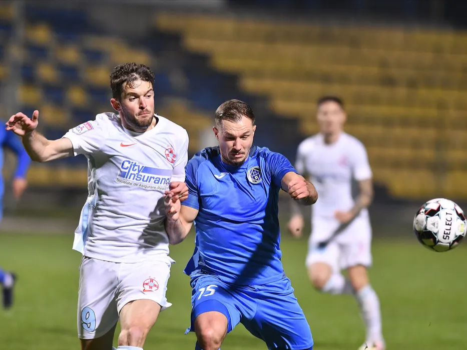 Sergiu Florin Bus si Mladen Jutric in meciul de fotbal dintre Academica Clinceni si FCSB, contand pentru Liga 1 Casa Pariurilor, desfasurat pe Stadionul Municipal-Ion Comsa din Calarasi, luni 19 octombrie 2020. © FOTO:Razvan Pasarica/SPORT PICTURES