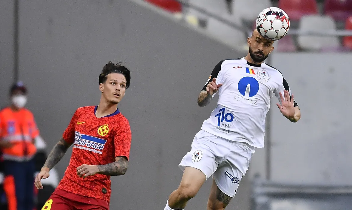 Dennis Man si Gabriel Rodrigues De Moura in meciul de fotbal dintre FCSB si Gaz Metan Medias, contand pentru play-off-ul Ligii 1 Casa Pariurilor, disputat fara spectatori pe Arena Nationala din Bucuresti, duminica 21 iunie 2020. © FOTO:Razvan Pasarica/SPORT PICTURES