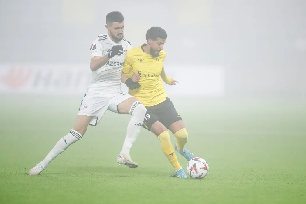 241212 Tural Bayramov of Qarabag and Rami Kaib of Elfsborg during the Europa League match between Elfsborg and Qarabag on December 12, 2024 in Borĺs.