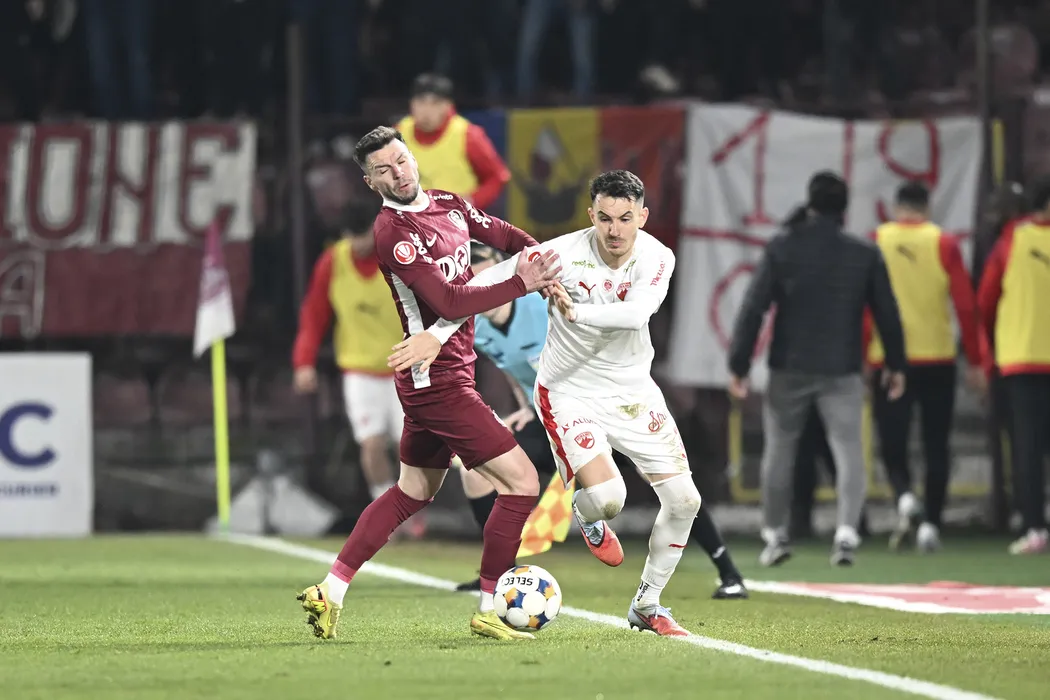 Raul Marian Oprut si Andrei Cordea in meciul de fotbal dintre FC CFR 1907 Cluj si FC Dinamo Bucuresti, contand pentru Superliga Superbet, desfasurat pe Stadionul Dr.Constantin Radulescu din Cluj-Napoca, luni 9 martie 2026. © FOTO:Flaviu Buboi/SPORT PICTURES