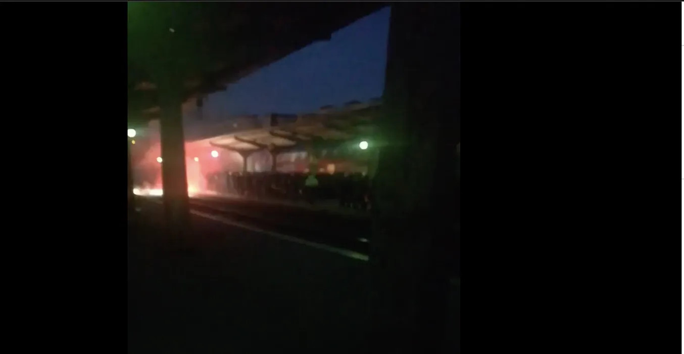 Derby-ul a început deja! Ultrașii Petrolului, haos în Gara de Nord înaintea meciului cu Rapid: au aruncat cu petarde și fumigene în timp ce erau escortați de jandarmi! | FOTO