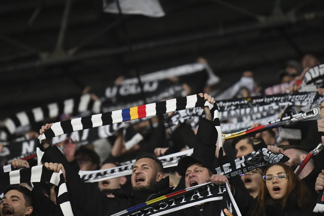 Suporterii clujeni cu fularele ridicate isi incurajeaza favoritii la meciul de fotbal dintre FC Universitatea Cluj si FC CFR 1907 Cluj, contand pentru Superliga Superbet Play-Off, desfasurat pe Cluj Arena din Cluj-Napoca, luni 16 martie 2026. © FOTO:Flaviu Buboi/SPORT PICTURES