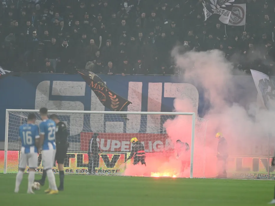 Fumigene in Peluza Sud craioveana la meciul de fotbal dintre Universitatea Craiova si FC U Craiova, contand pentru Superliga Superbet, desfasurat pe Stadionul Ion Oblemenco din Craiova, sambata 3 decembrie 2022. © FOTO:Razvan Pasarica/SPORT PICTURES