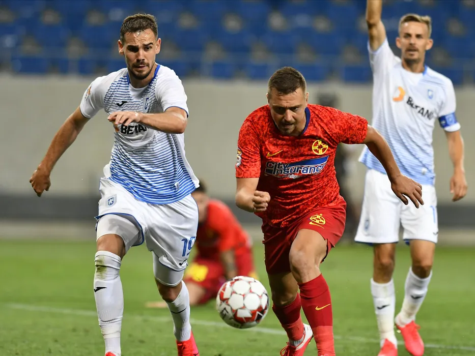Elvir Koljic si George Andrei Miron in meciul de fotbal dintre Universitatea Craiova si FCSB, contand pentru play-off-ul Ligii 1 Casa Pariurilor, disputat fara spectatori pe Stadionul Ion Oblemenco din Craiova, duminica 12 iulie 2020. © FOTO:Razvan Pasarica/SPORT PICTURES