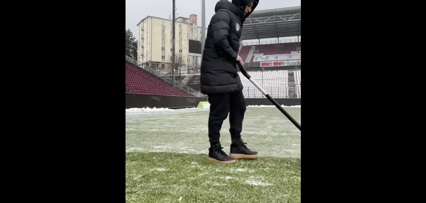 Derby-ul Superligii are șanse mari să se joace pe un gazon impracticabil! La Cluj ninge ca-n povești: „E ca în Frații Grimm! Trebuie să bagi cu lopata, n-ai ce să faci”